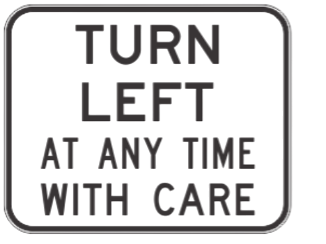 750X600 Turn Left At Any Time With Care NSW SPEC