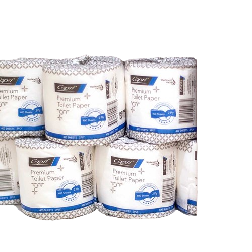 Capri Toilet Tissue Roll 2 Ply Individually Wrapped Premium White 400 Sheets