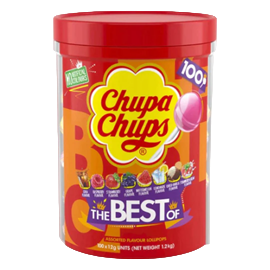 A tube of 100 Chupa Chups lollipops including the most popular Fruit, Creamy and Cola Chupa Chups flavours & more Fun flavour lollipops Multiple flavours A delicious treat Experience the best Chupa Chups mix of flavours Weight: 1.2kg Quantity: 100 lollipops