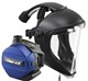 A light protective shield with an easily exchangeable visor provides respiratory and face protection in grinding and dusty environments. When connected with the CleanAIR Basic PAPR unit, the system provides a constant, controlled flow of air to the worker