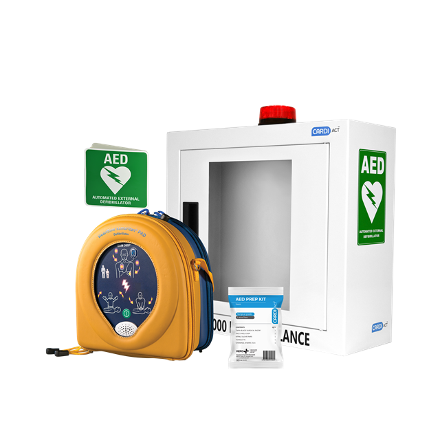 KIT CONTENTS: HEARTSINE 360P DEFIBRILLATOR, Y-CC-50 AED ALARMED CABINET, Y-CA-PK2 AED BASIC PREP KIT, Y-CA-10 AED ANGLED WALL SIGN The Samaritan® 360P utilises advanced technology to assess patient differences, analyse heart beats, and automatically perform shocks accordingly Defibrillator automatically delivers shocks, if needed, eliminating the risk of human error Simple to use device with CPR coaching Highest level of protection from dust and water IP56 - Dust & Moisture Lighter and smaller than other defibrillators (1.1kg), with carry case included Uses easy-to-understand voice and visual prompts to guide the user throughout the process Detects motion and other interferences to ensure the rhythm is shockable One-button operation reduces any confusion with device running automatic weekly self checks Flashing status indicator shows that the device is ready for use 8 year Warranty