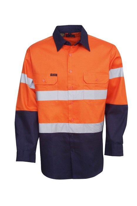 Description Durable and Comfortable cotton drill, Pre shrunk Underarm air flow cotton mesh vents Twin pockets with button up flaps Now with navy colour collar Comply with new Hi Vis Safety Garment Standard AS/NZS 4602.1:2011 and AS/NZS 1906.4:2010 Class D/N, For Day or Night Use UPF Rating: 50+