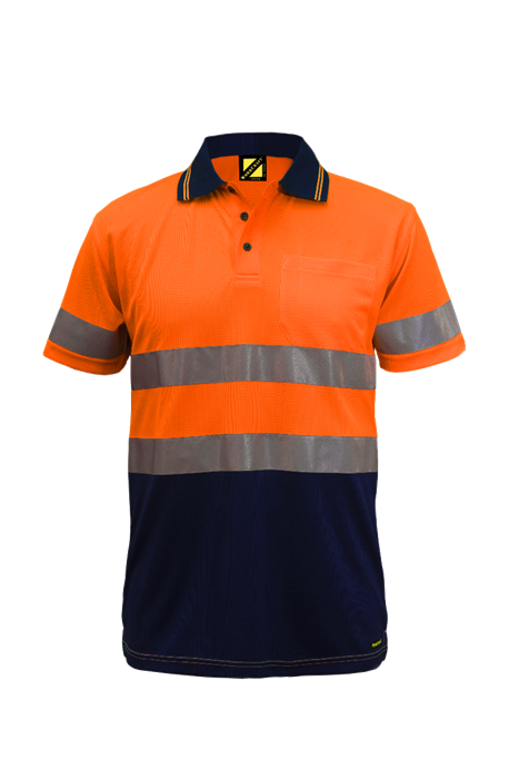 HI VIS TWO TONE SHORT SLEEVE MICROMESH POLO WITH POCKET AND CSR REFLECTIVE TAPE