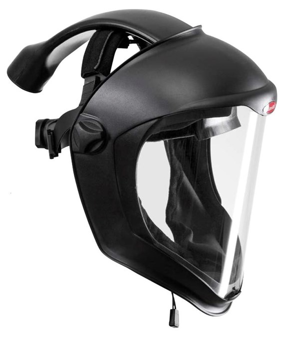 This light protective shield with an easily exchangeable visor provides respiratory and face protection in different industrial applications. The visor offers a broad and clear field of vision, high chemical resistance, and protection against liquid spraying