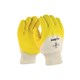 Description: Textured latex dipped for enhanced grip Jersey lined for comfort and sweat absorption Knitted wrist to exclude debris Colour: Yellow/White Size Range: One Size Pack: 12 pairs Carton: 120 pairs Features Open back jersey liner provides improved breathability and sweat absorption