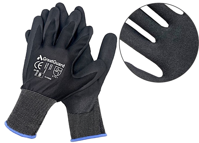 Palm Coating Nitrile Palm Finish Textured Sandy Foam,Black Knight Grip Master Sizes 7/S Red Band 8//M Yellow Band 9/L Blue Band 10/XL White Band 11/XXL Green Band Features Black Sandy Foam Knight Grip Master Lasts longer time Perfect for use on wet Oil,and grease surfaces Great Dexterity and fingertip Sensitivity Breathable,comfortable and low sweating for all-day wear Washable and Re-usable Tested CE EN388 4131 Abrasion,cut,Tear and Puncture resistance