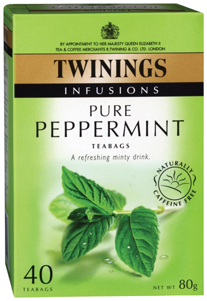 This tea contains only pure peppermint leaves, so has a deliciously light, minty refreshing taste And not only does it taste great, but peppermint can also aid digestion Enjoy the cooling, minty taste after any meal, especially when you're feeling full It's caffeine free so it is also perfect to drink just before bed Naturally caffeine free, Twinings Herbal and Fruit Infusions are low in calories but high in flavour As with all infusions you can enjoy them hot or cold Deliciously light, minty Great taste Refreshing.