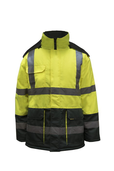 Tough, Water-Resistant Outer Shell 320gsm Polyester Fibrefill Insulation Rib Lined Collar and Cuffs to lock in body warmth Polar Fleece Lined Hood Zip Off Hood Chest Patch Pocket Dual Front Pockets Day/Night Use Bio-Motion Technology YSL 100 Reflective Tape For Domestic Wash Garment Complies AS/NZS 4602.1:2011 450D Polyester Oxford PU Coated