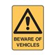 Warning Sign - Beware Of Vehicles (Metal) H600mm x W450mm