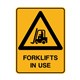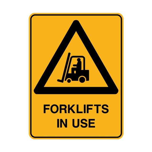 Warning Sign - Forklifts In Use (Metal) H600mm x W450mm