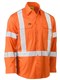 Perforated reflective taped X back with extra back hem tape and biomotion taping on sleeves Vertical cotton mesh back ventilation Underarm cotton mesh ventilation Two button down chest pockets Pen division on left chest pocket Two piece structured collar Two button adjustable sleeve cuff AUS RAIL AS 7471:2019 APPLIES TO RAIL ORANGE COLOURWAY ONLY FABRIC 100% Cotton Preshrunk Drill 155gsm 100% Cotton Open Mesh 125gsm SIZES XS - 6XL Traditional Fit