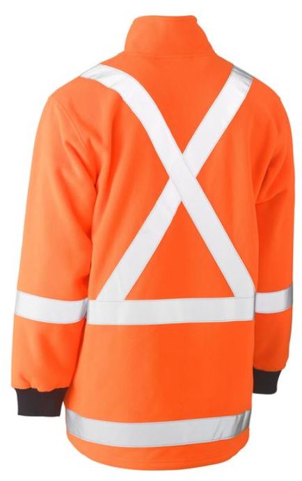 Stretch reflective taped X back with extra hem tape Low pill polar fleece TTMC-W17 compliant Longer back tail 1/4 zip Contrast navy rib cuffs FABRIC 100% Polyester Polar Fleece 380gsm Poly/Cotton 2x2 Rib Knit SIZES XS - 6XL Traditional Fit