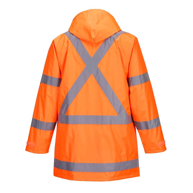 Features Radio loop for easy clipping of a radio 4 pockets for ample storage Detachable ID pocket Storm flap front to protect against the elements 50+ UPF rated fabric to block 98% of UV rays Wind resistant fabric to protect against wind chill Bio motion tape pattern to improve recognition of human shape at distance Pack away detachable hood for convenience Two-way zip for quick and easy access 3 pockets for ample storage Touch tape cuffs for a secure fit Concealed stud and zip fastening Internal pockets for safe storage X Back tape pattern provides additional wearer visibility Extremely water resistant fabric finish, water beads away from fabric surface Waterproof with taped seams to prevent water penetration Shell Fabric : 100% Polyester, 150D Oxford weave, PU coated 130g Lining Fabric : 100% Polyester Mesh 60g